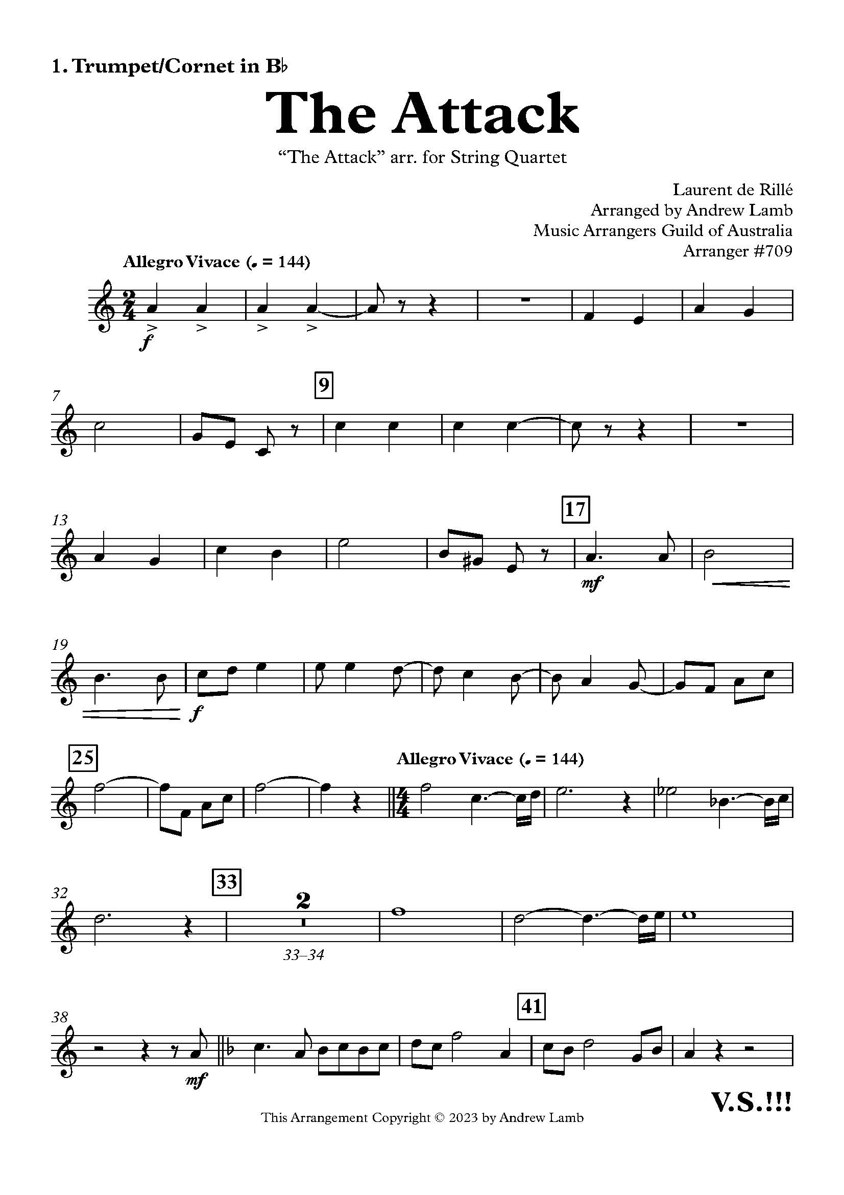 Introducing “The Attack” (L’assaut) – an exhilarating arrangement for Brass Quartet by the talented French composer Laurent de RillĂ©. Originally composed in 1869 as a secular chorus, this captivating arrangement transforms the piece into a dynamic showcase for 2 Trumpets, French Horn, and Trombone, with the added versatility of an alternative Tenor Horn part and Euphonium in Treble Clef.