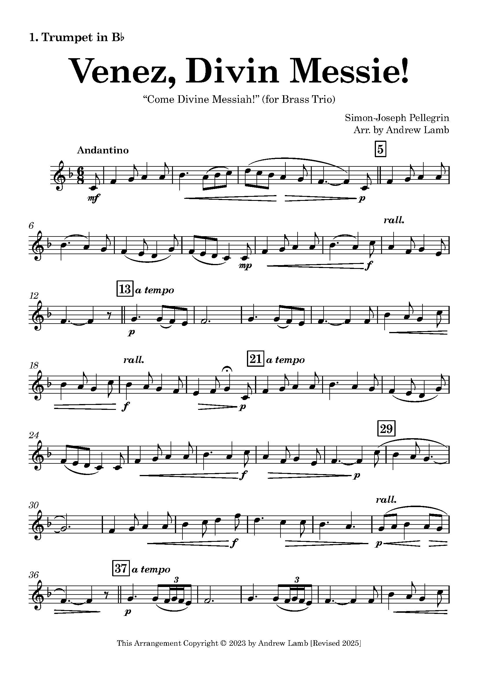 Introducing “Venez, Divin Messie” – A Brass Trio Arrangement.