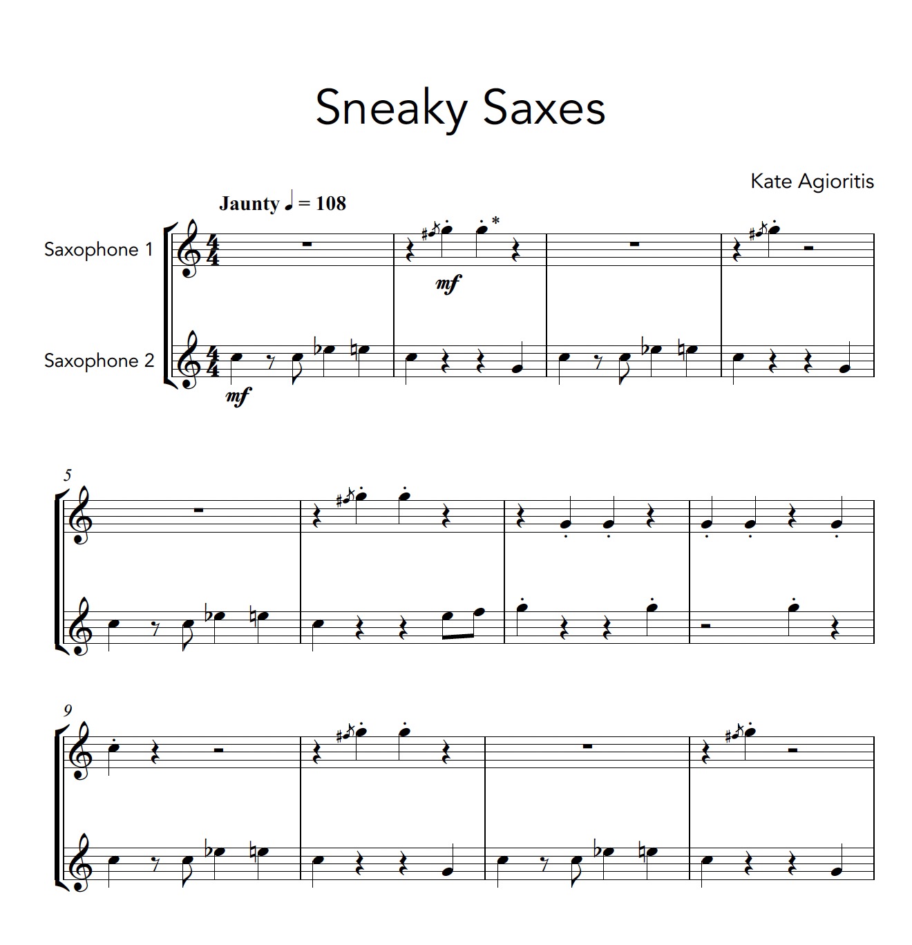 Perfect for lessons, recitals, or casual performance, Sneaky Saxes is sure to delight both players and audiences alike.