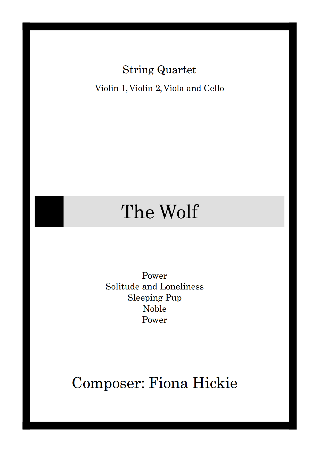 This work is a set of pieces for string quartet, that portrays a wolf.