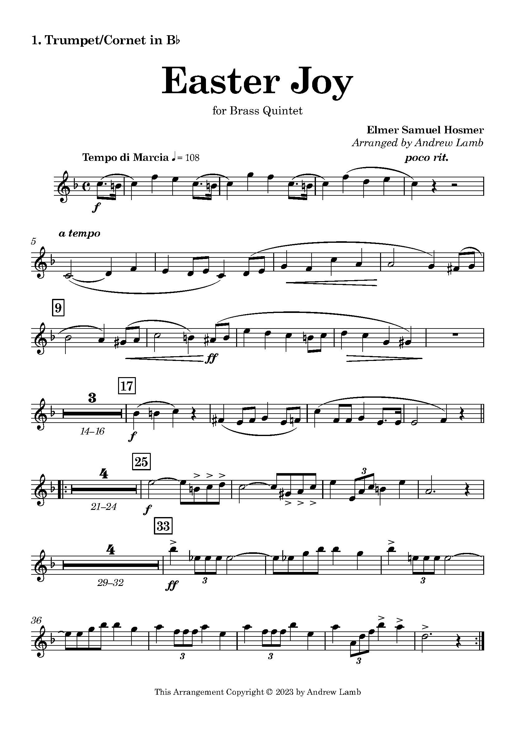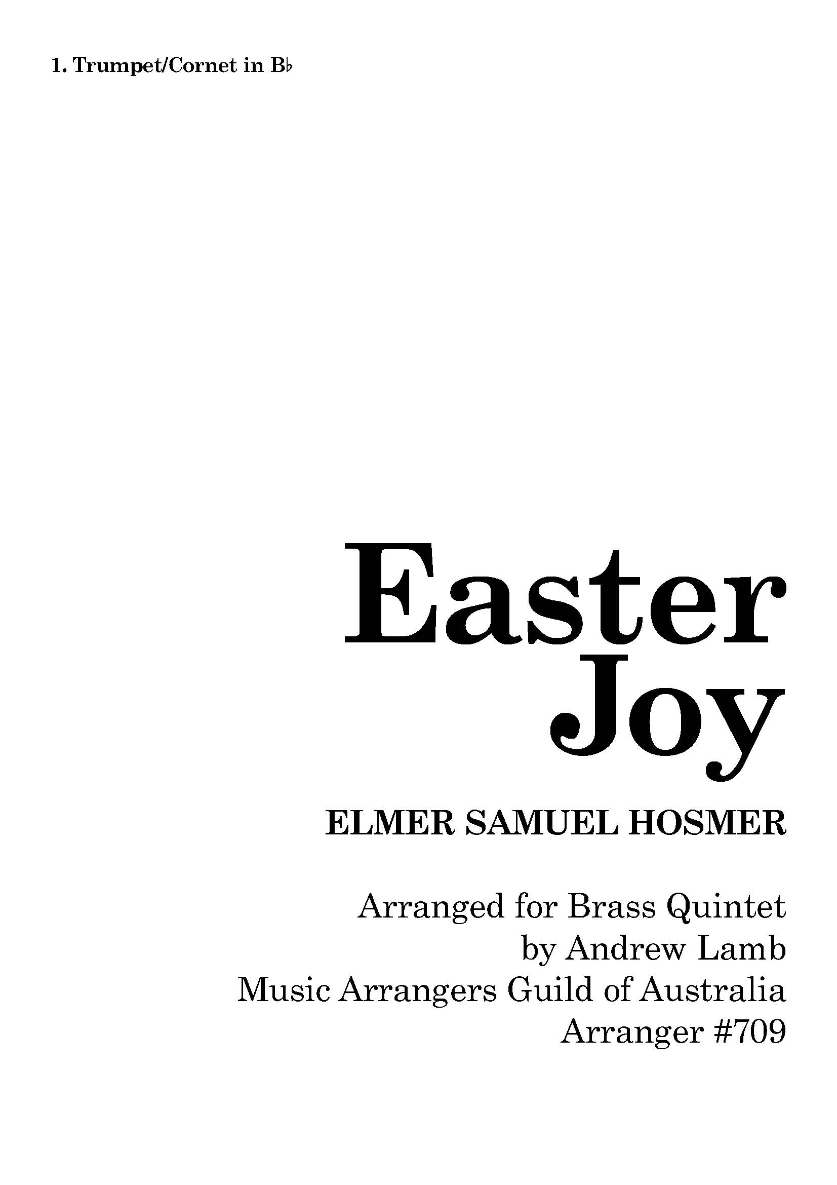 Description:Â This is my transcription of Easter Joy, by American Organist and composer Elmer Samuel Hosmer (1862 – 1945). Originally published in 1926, this piece is written in the early 20th Century style.