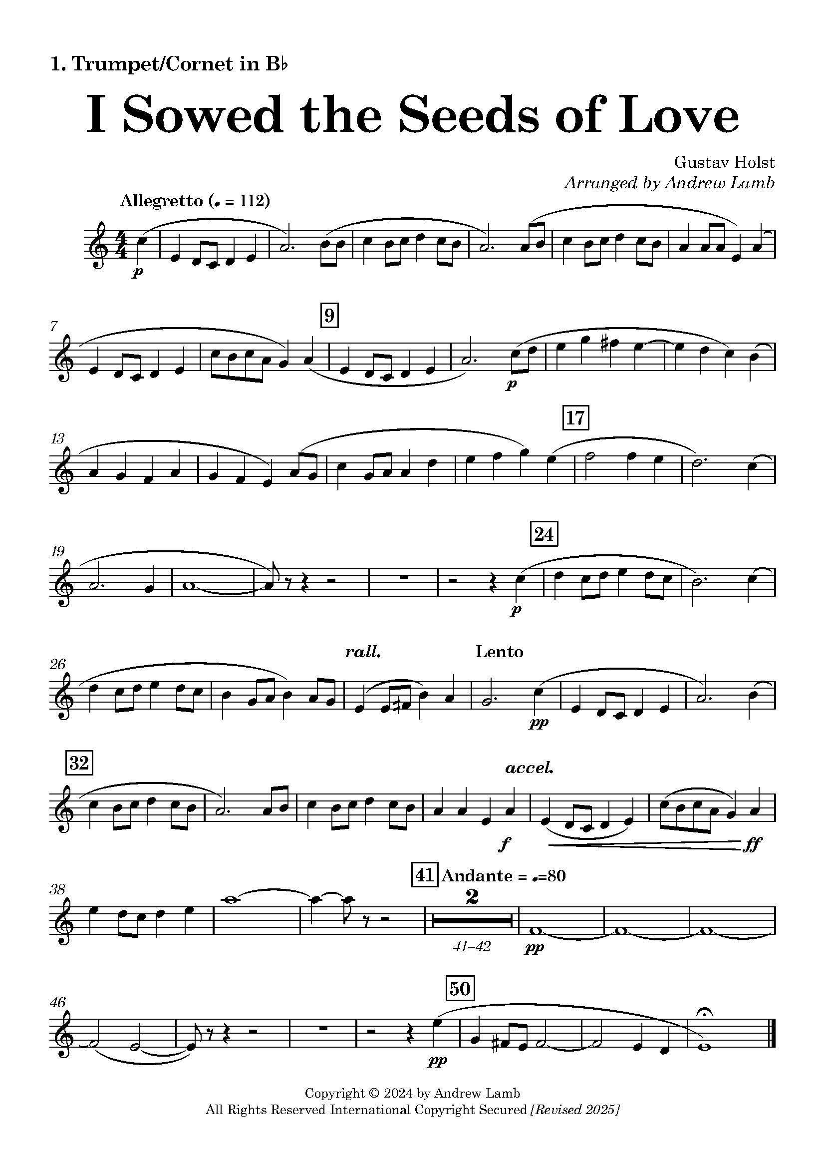 Gustav Holst – I Sowed the Seeds of Love Arranged for Brass Sextet (2 Trumpets, Horn, Trombone, Euphonium, Tuba)