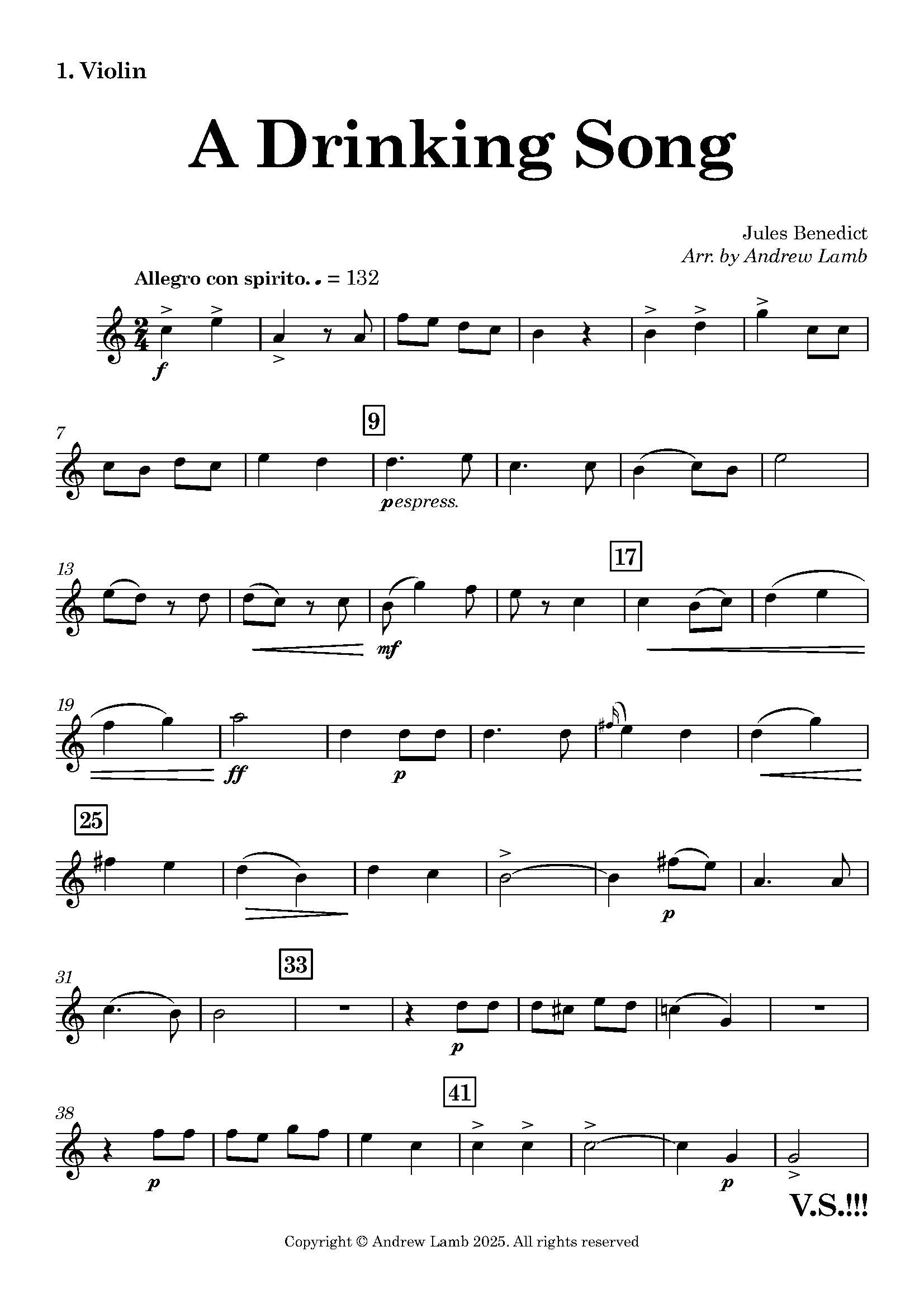 String Quartet Arrangement of “A Drinking Song” by Sir Julius Benedict