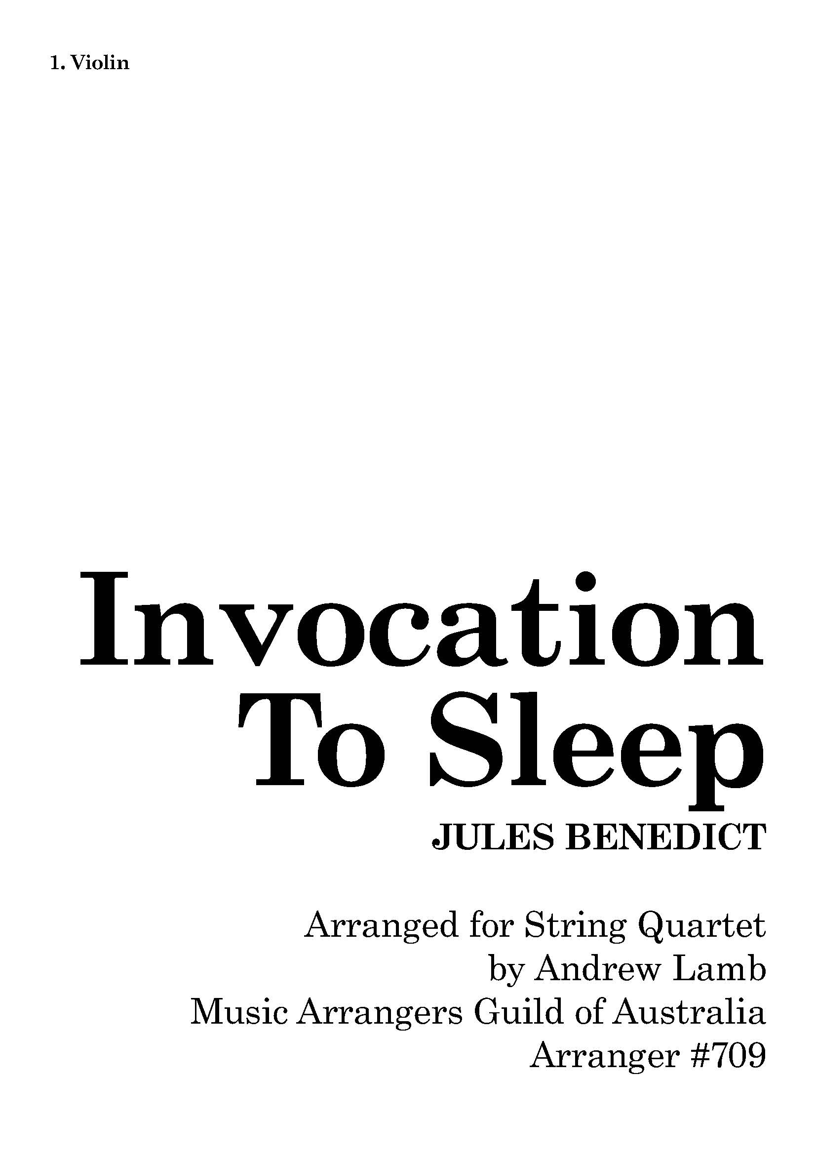 String Quartet Arrangement of “Invocation to Sleep” by Jules Benedict