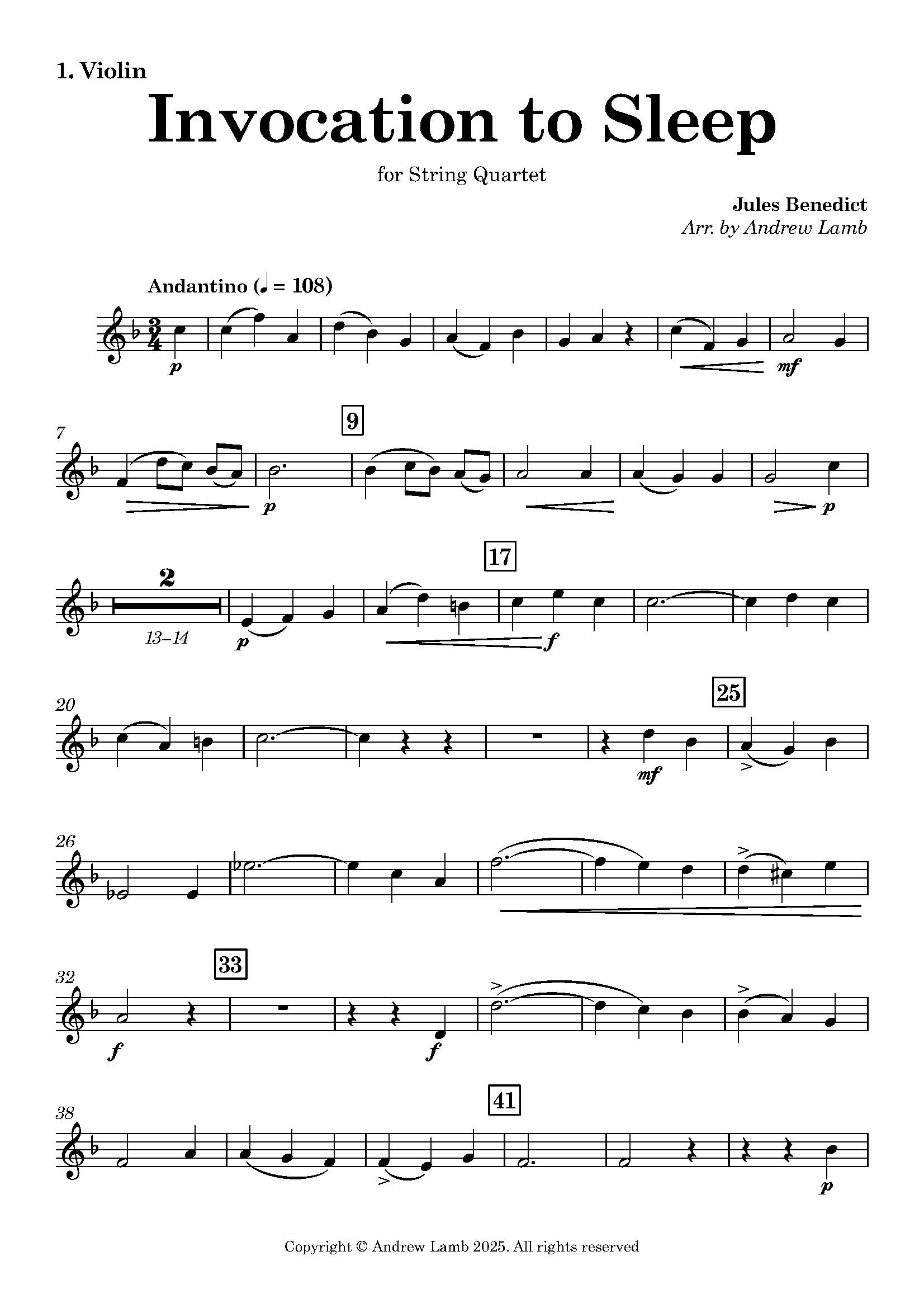 Immerse yourself in the tranquil atmosphere of “Invocation to Sleep” and bring the Romantic spirit of Jules Benedict to life with this beautifully arranged string quartet.