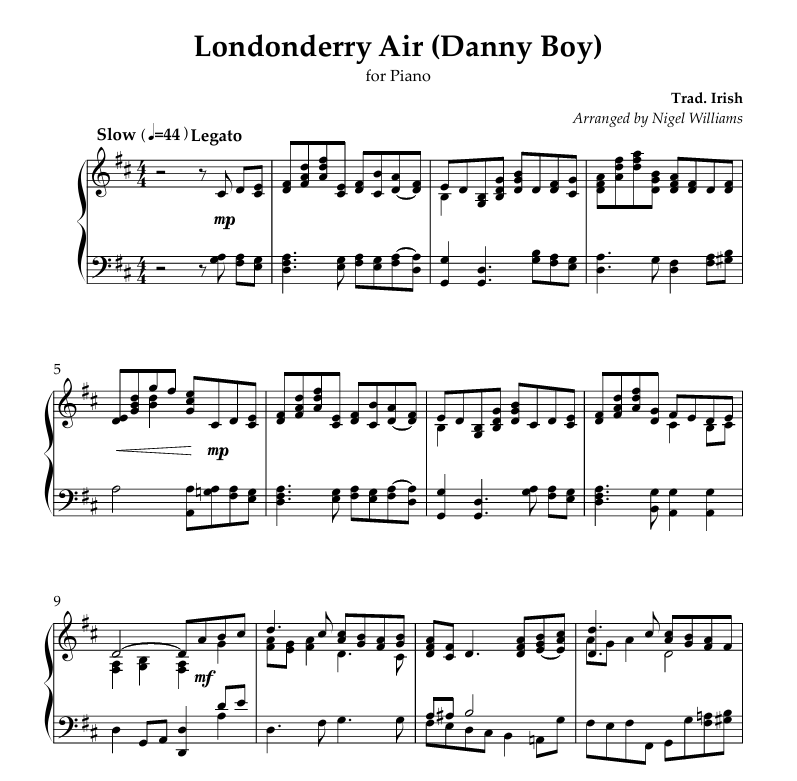 Popular Irish tune, and music to the to the Gospel hymn He Looked Beyond My Faults. Early intermediate level, two pages.
