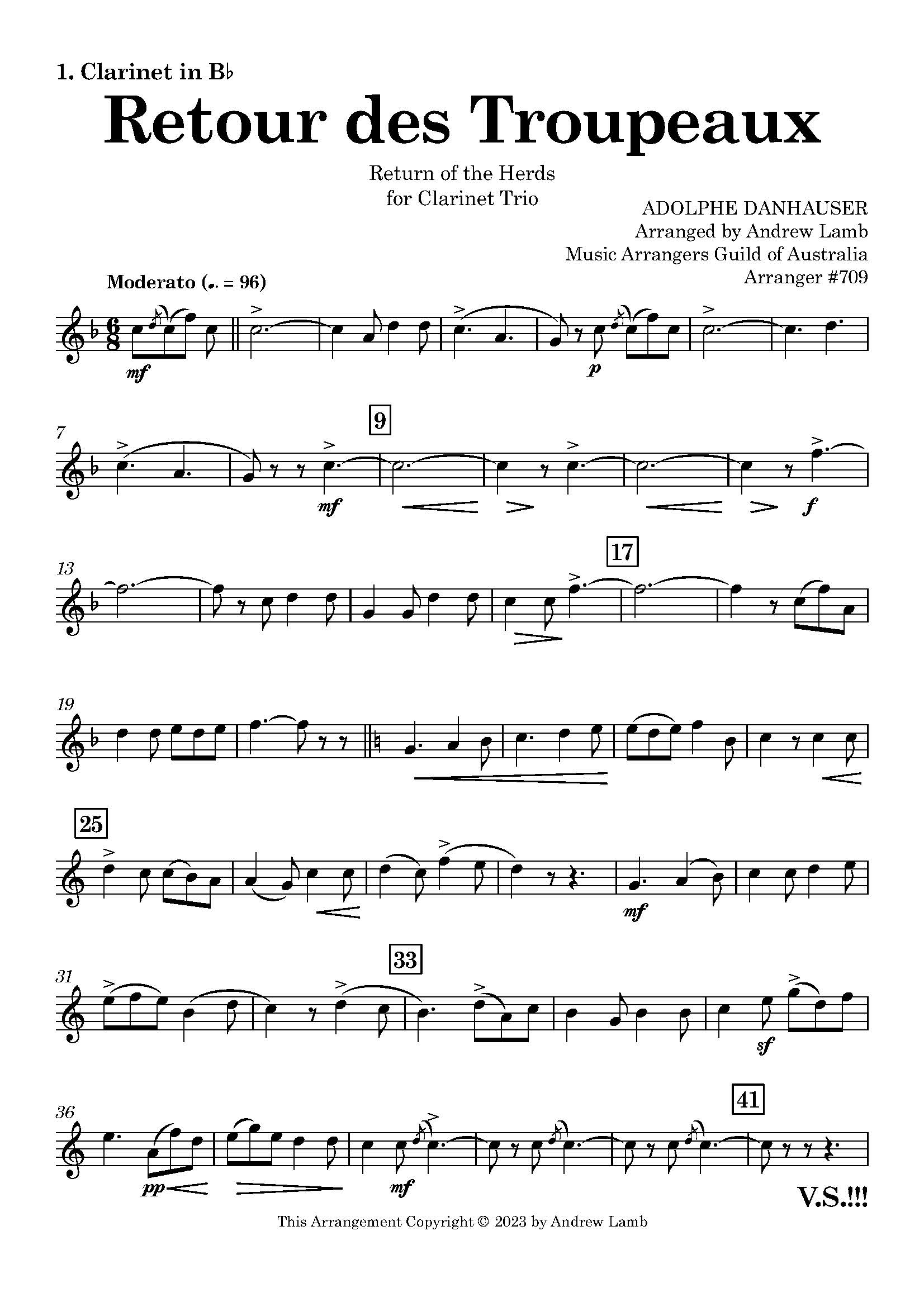 Introducing “Return of the Herds” (Retour des Troupeaux), a captivating clarinet trio arrangement meticulously crafted from the imaginative composition by Frenchman Adolphe Danhauser. Originally conceived as a secular chorus, this arrangement now finds new life in the world of clarinets.