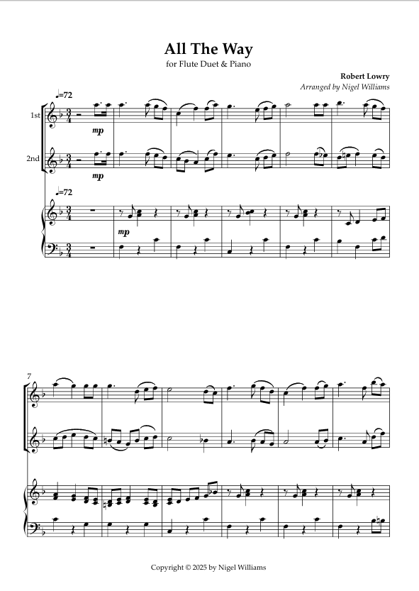 A gentle attractive arrangement, score and parts, early intermediate level.