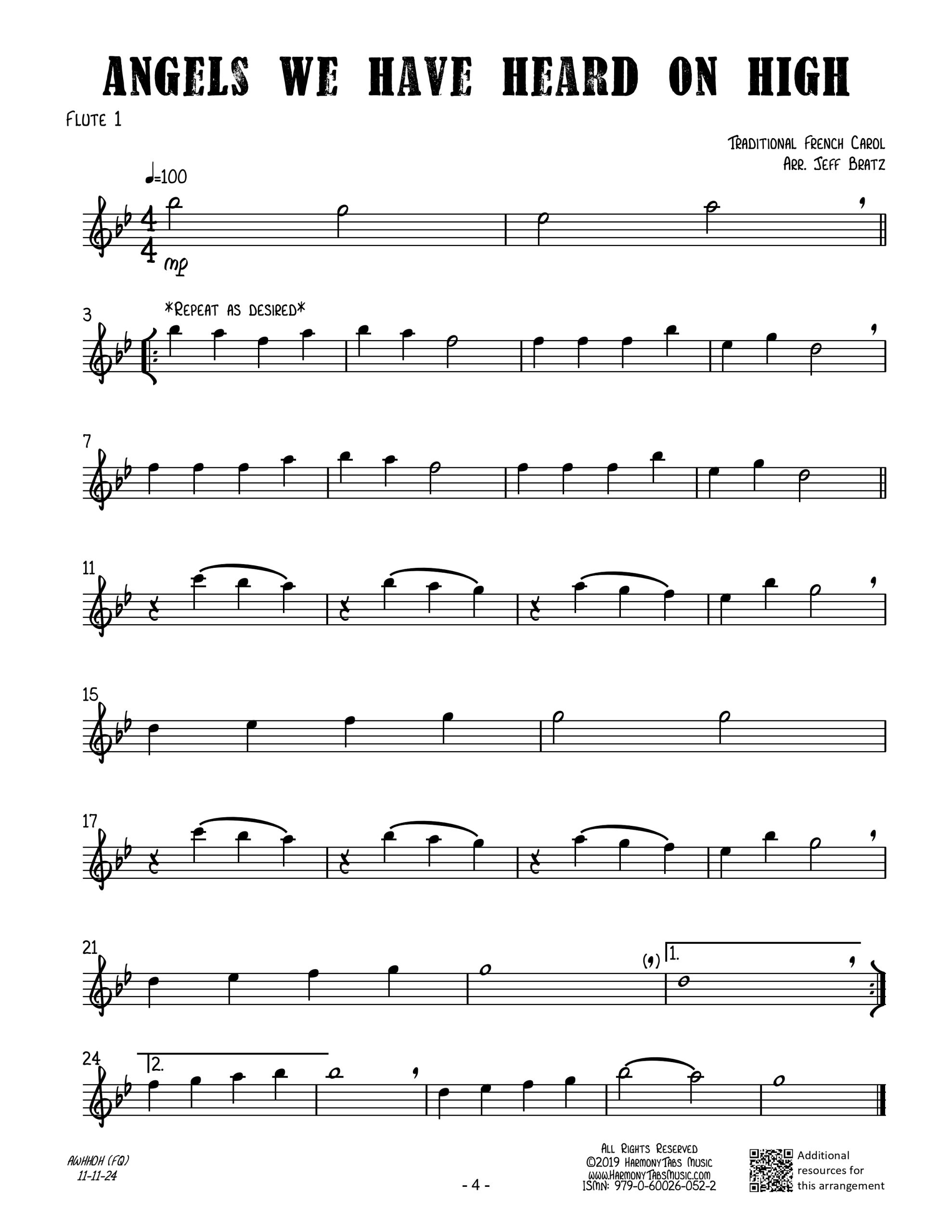 | A flute quartet arrangement of Angels We Have Heard On High. Ideal for holiday caroling! |