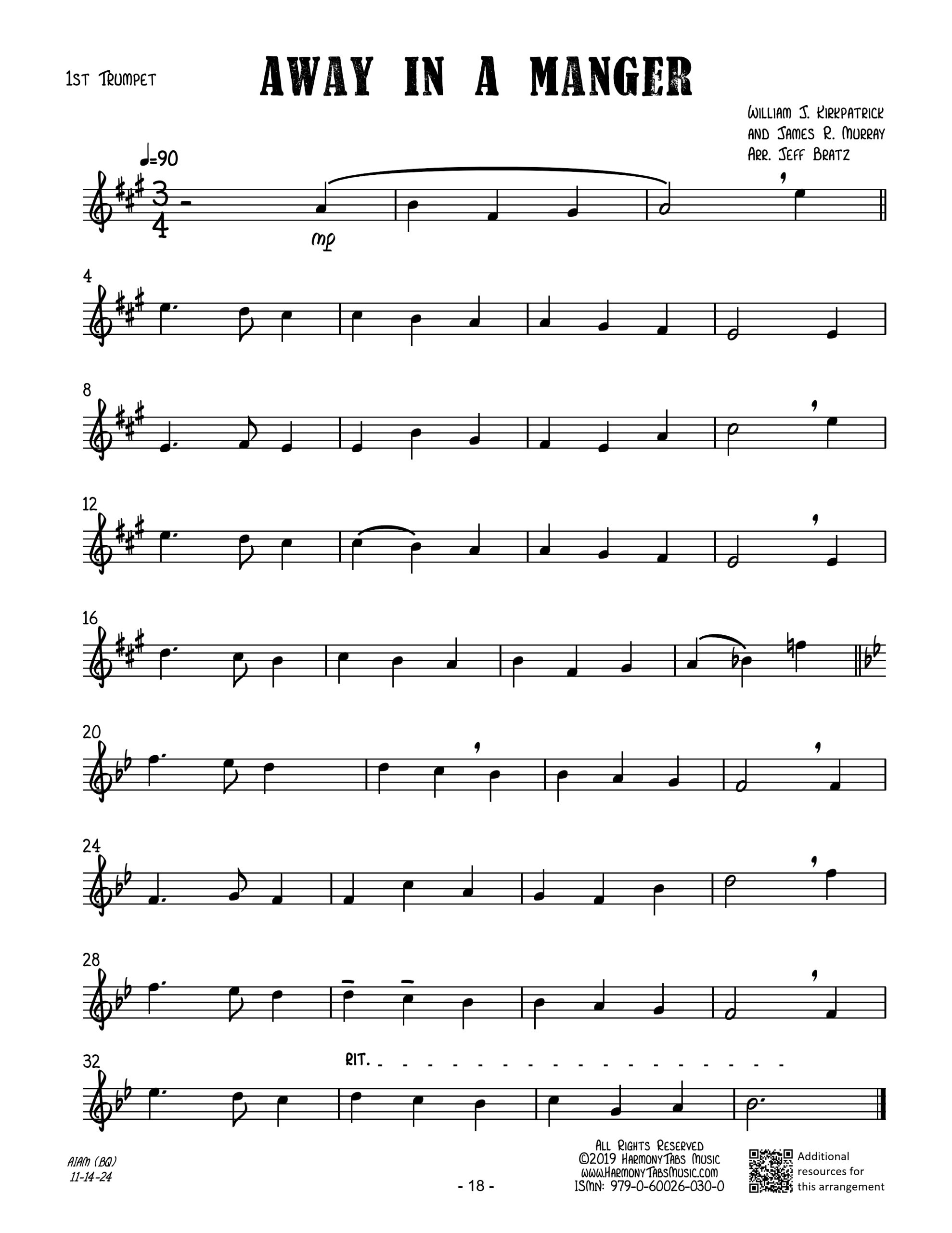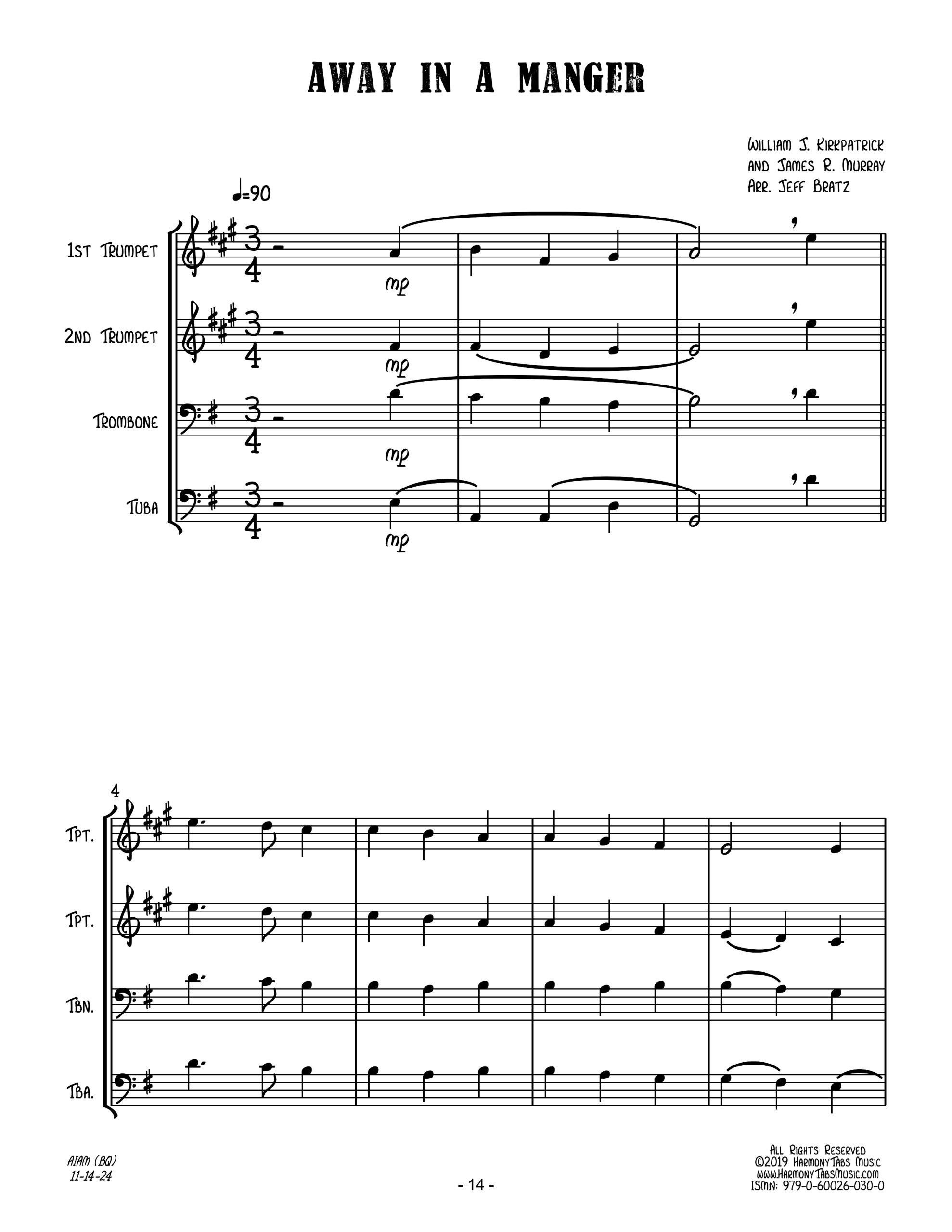 | A brass quartet arrangement of Away In A Manger. Ideal for holiday caroling! |