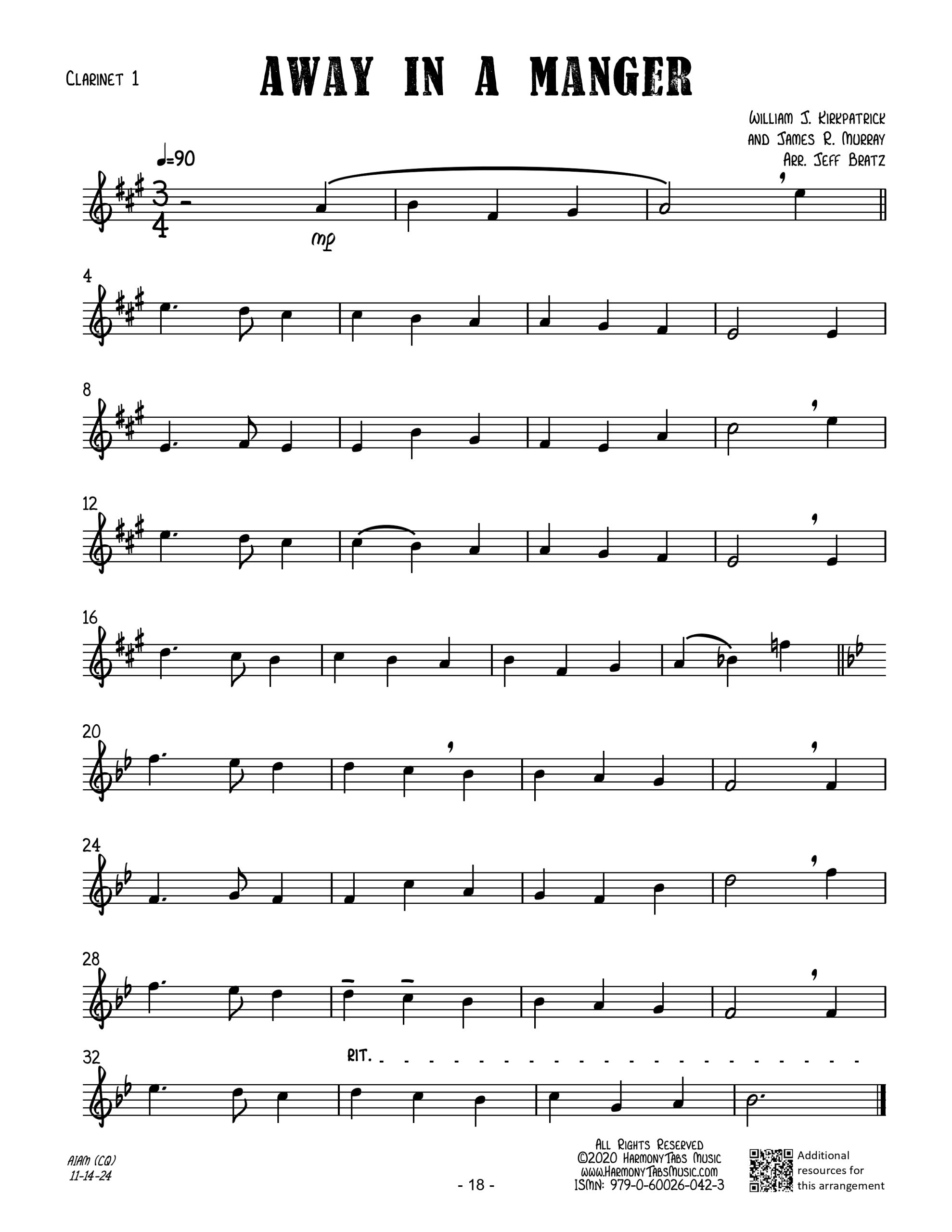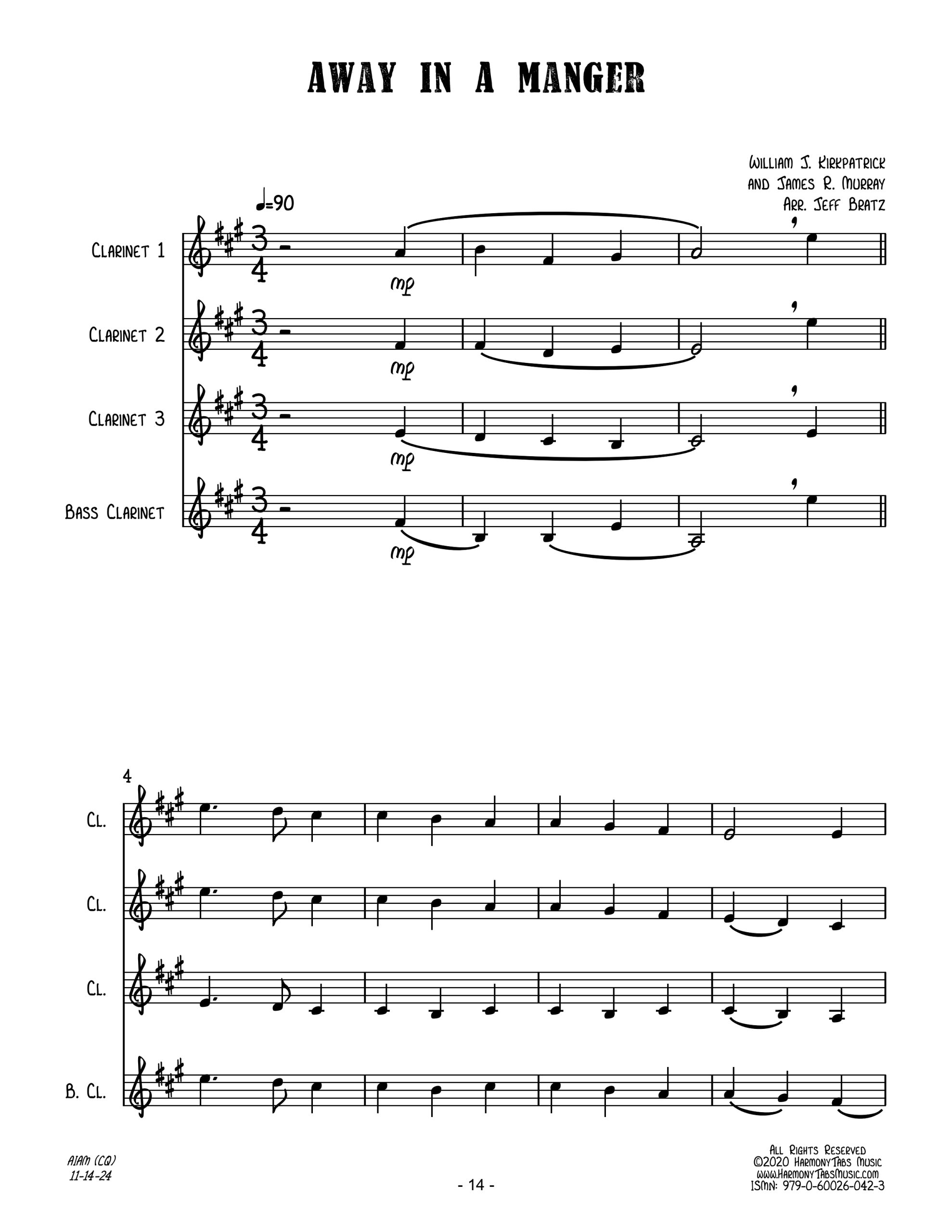 | A clarinet quartet arrangement of Away In A Manger. Ideal for holiday caroling! |