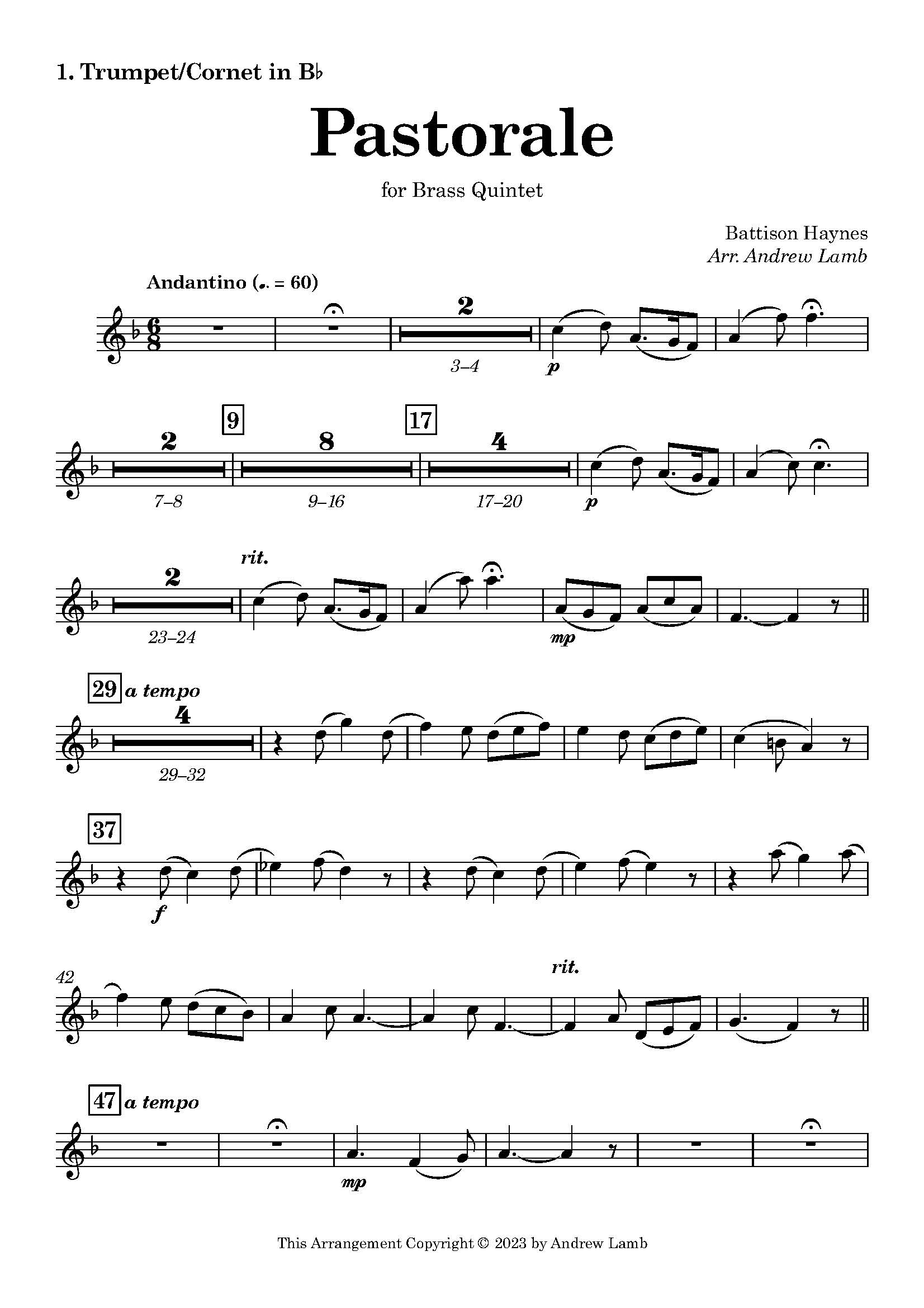 Don’t miss the opportunity to bring the enchanting sounds of this arrangement to your next performance or event. Elevate your brass quintet’s performance with the captivating and serene melodies of “Pastorale” by Battison Haynes.
