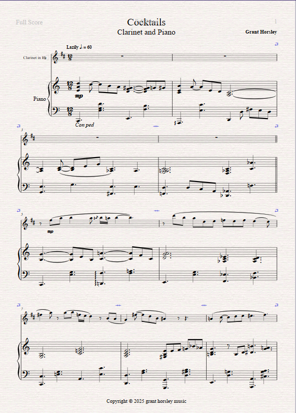 The full score is 10 pages- Clarinet 4 and Piano 6 pages, and is 5mins 45 mins long.