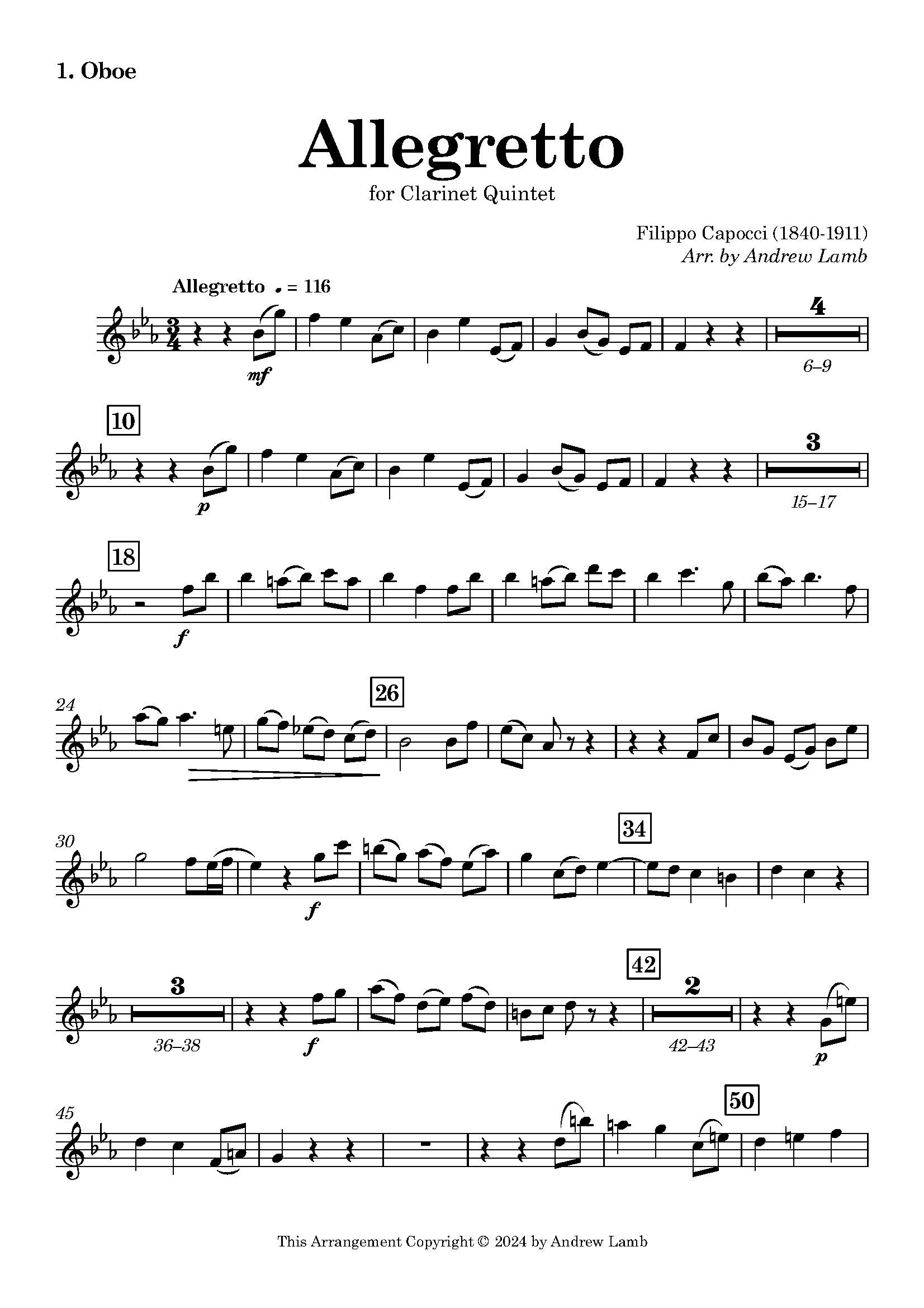 🎶 Double-Reed Quintet Adaptation of “Allegretto” by Filippo Capocci 🎶