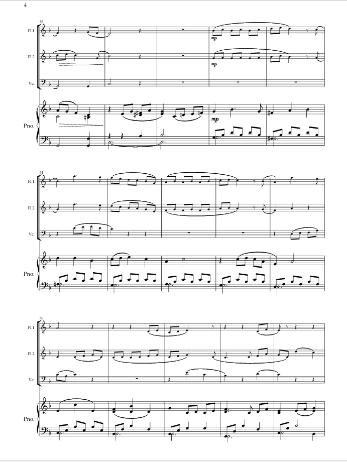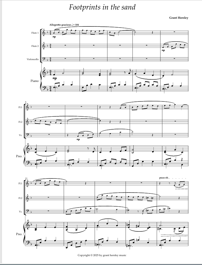 Footprints in the sand. For Mixed quartet (2 Flutes, Cello and Piano).