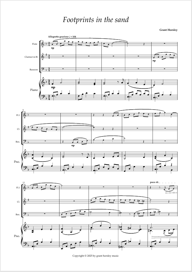 Footprints in the sand. For Wind Trio and Piano. (Flute, Clarinet Bassoon)