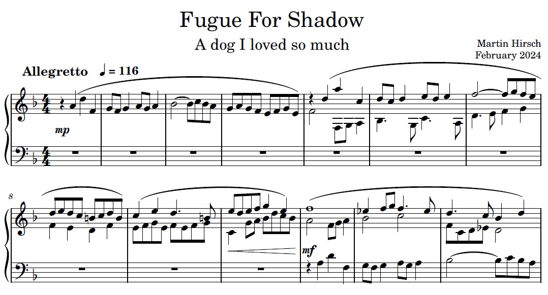 Emotional fugue I wrote after losing my wonderful dog Shadow.