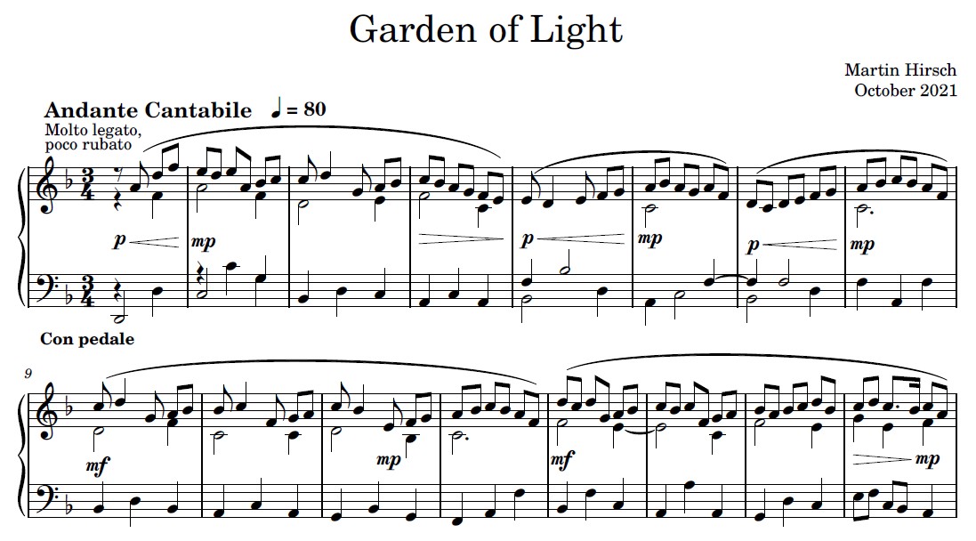 Garden of Light is a gentle, lyrical piano solo in the romantic tradition.