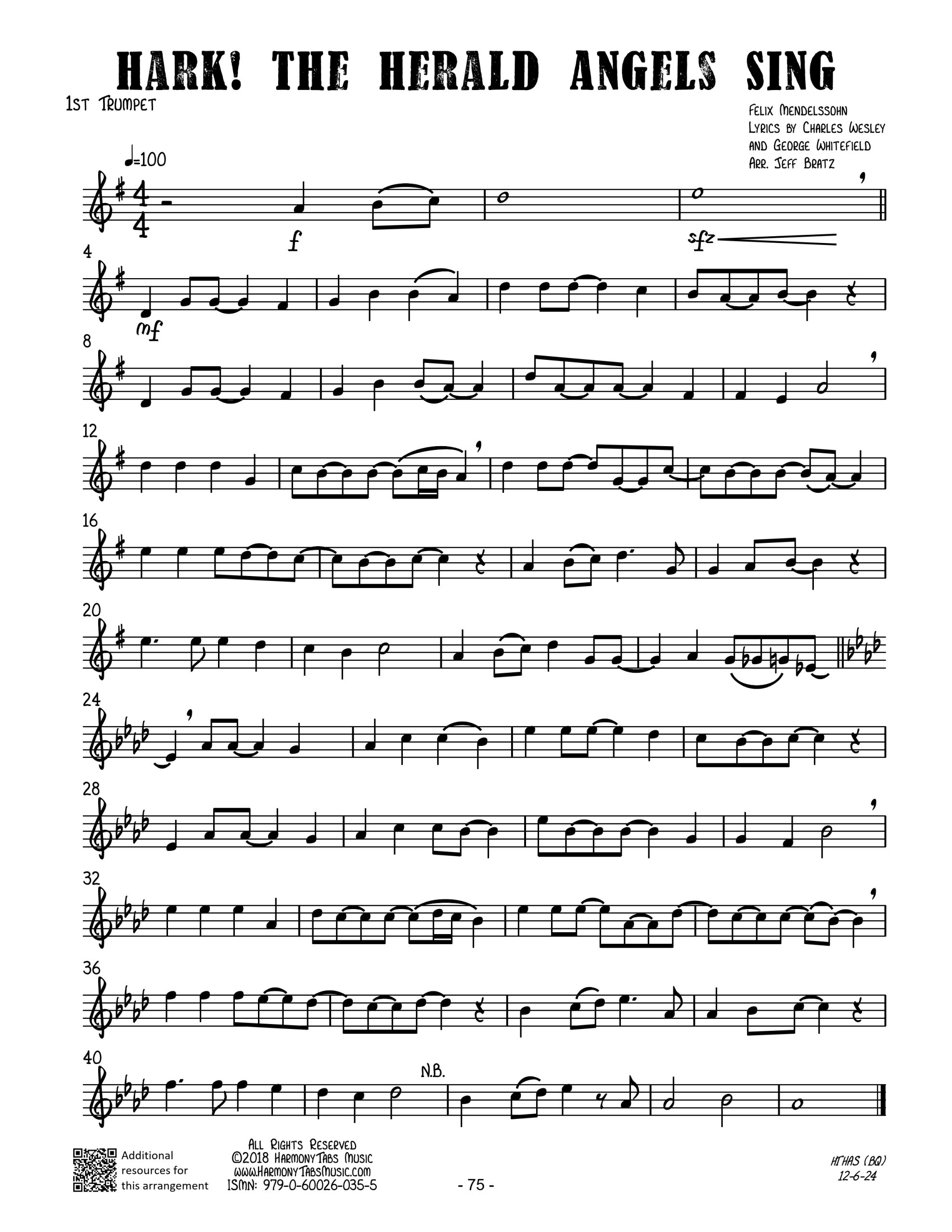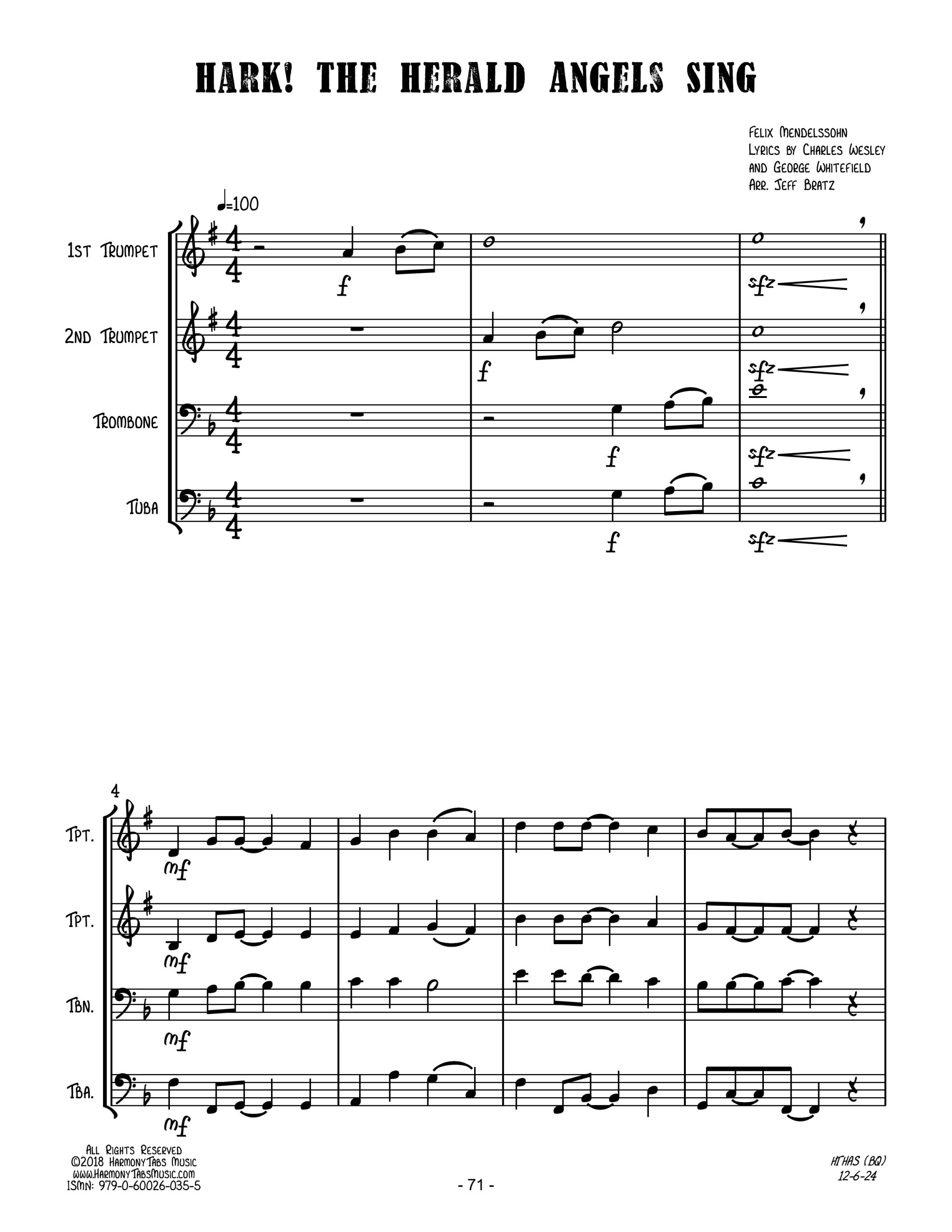 | A jazzy brass quartet arrangement of Hark! The Herald Angels Sing. Ideal for holiday caroling! |