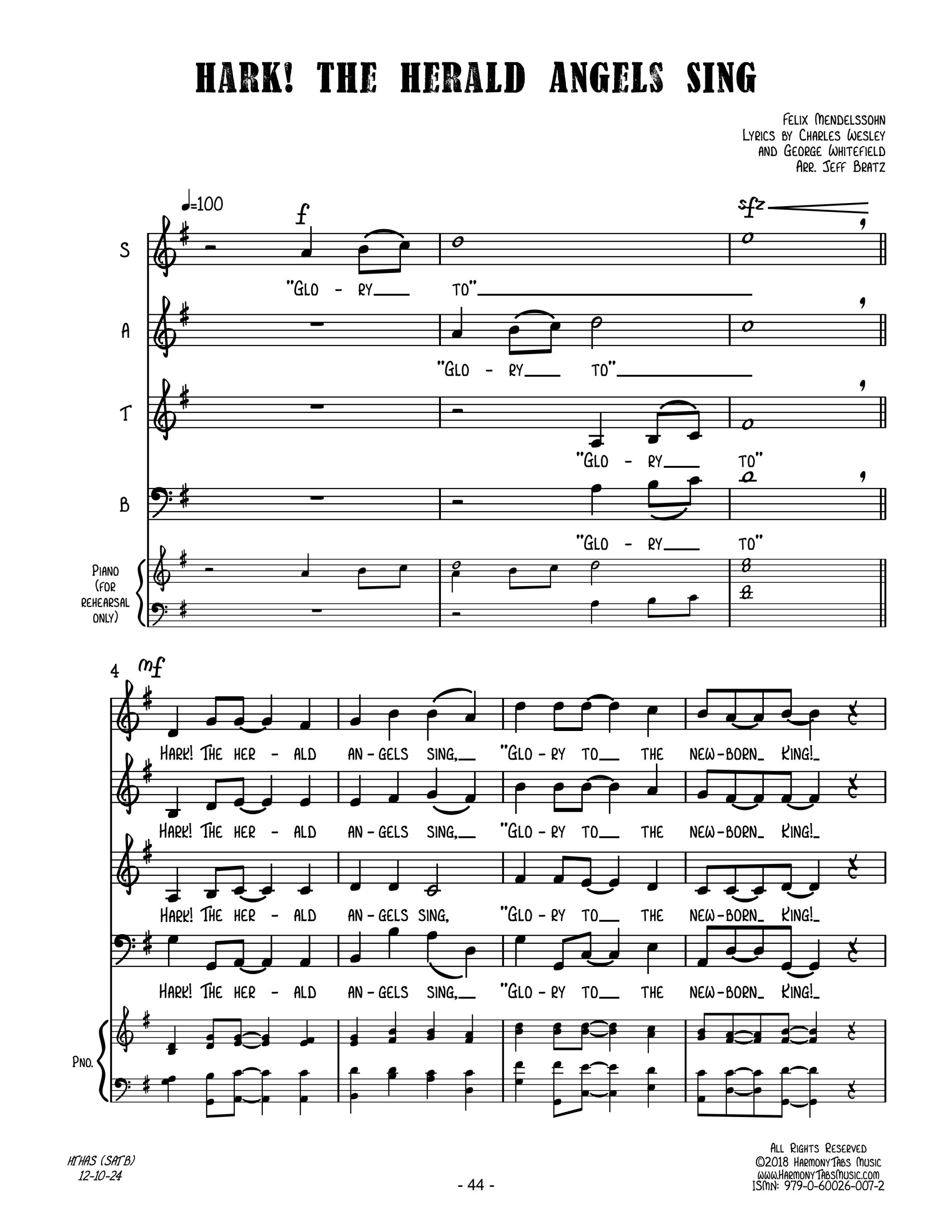 | A jazzy SATB a cappella arrangement of Hark! The Herald Angels Sing. Ideal for holiday caroling! |
