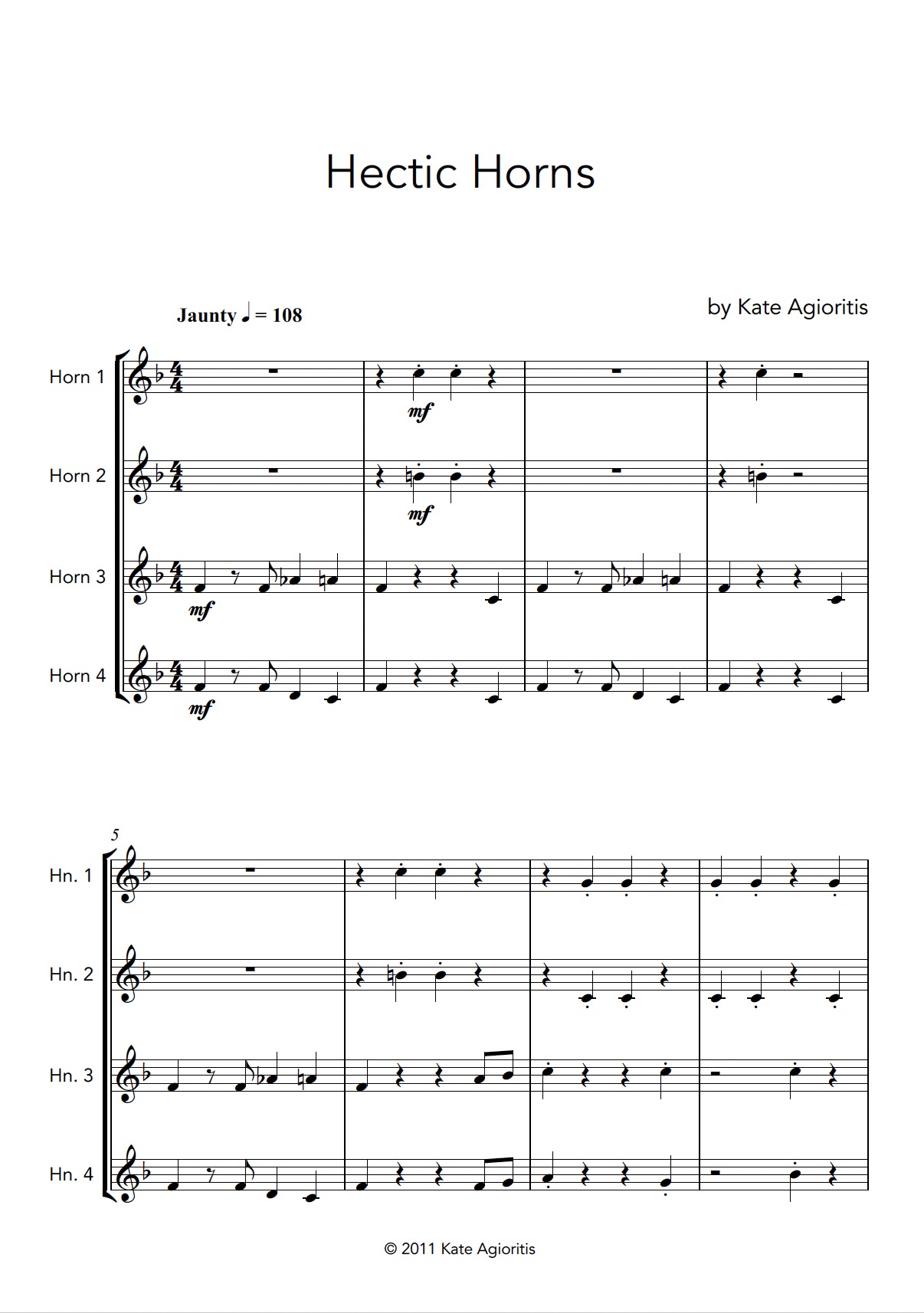 Get ready for some lively fun with Hectic Horns! This playful horn quartet is full of energy and character—perfect for early intermediate players looking for a challenge that’s engaging but accessible. With memorable themes and an upbeat spirit, this piece is an ideal choice for concerts, competitions, or just some spirited rehearsal fun.