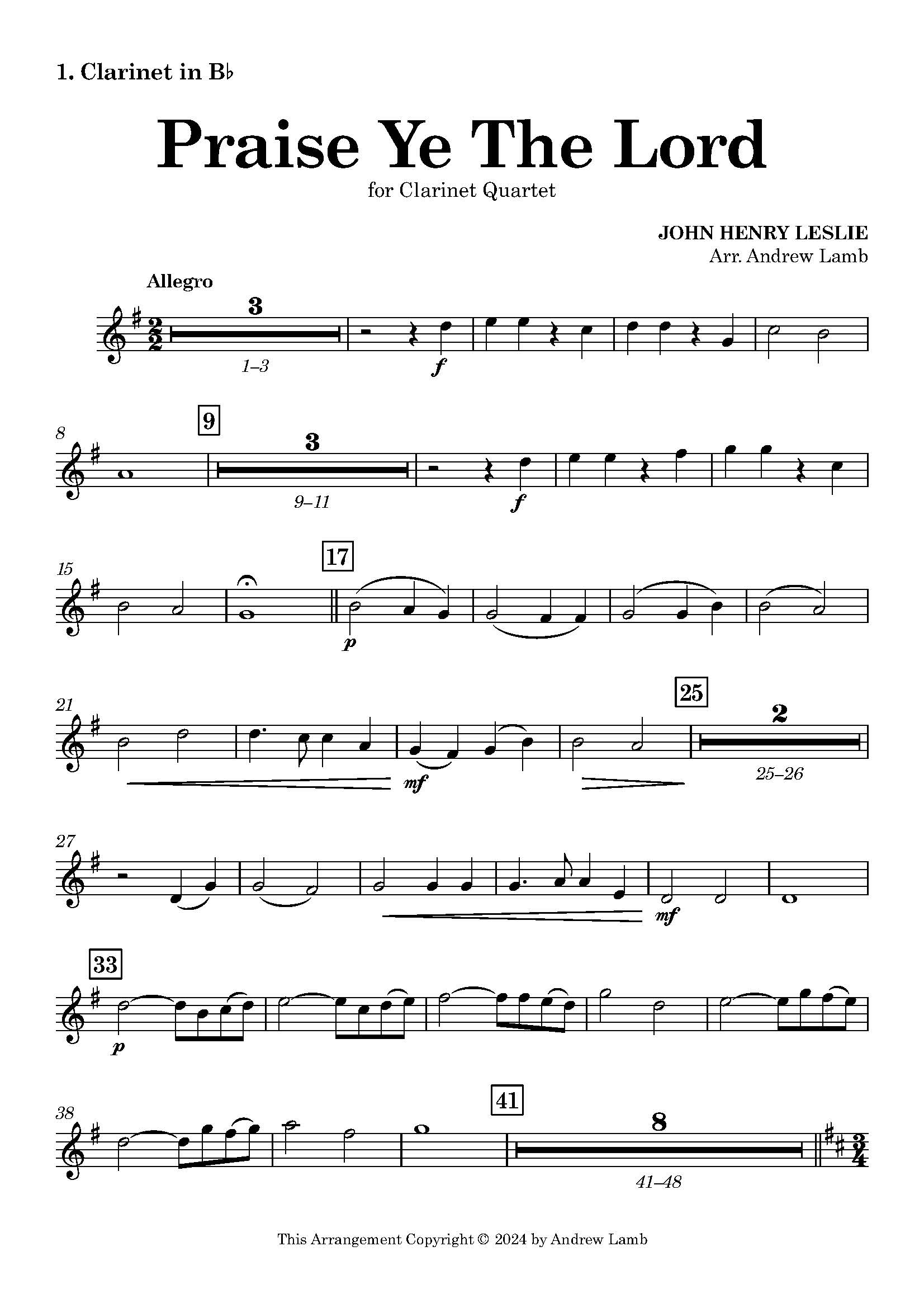 Bring a touch of sacred elegance to your next performance with this clarinet quartet arrangement of Praise Ye The Lord, a jubilant hymn by English composer John Henry Leslie. Known for his expressive sacred works, Leslie’s music blends lyrical warmth with harmonic richness, making it a favourite for ensemble settings.