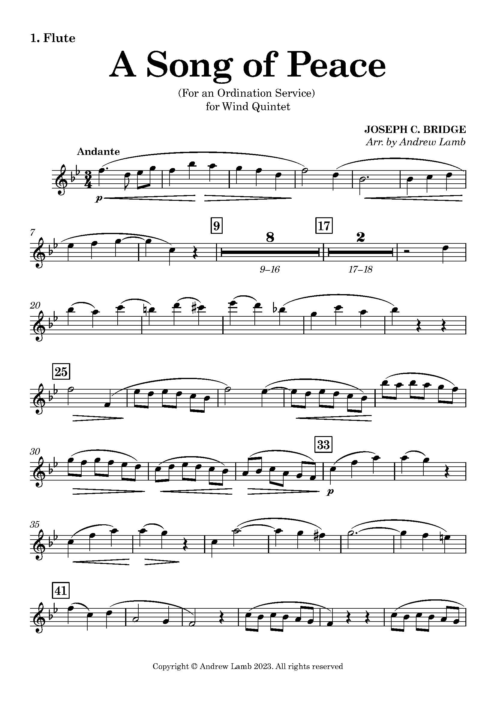 Immerse your audience in the tranquil beauty of ‘Song of Peace’ with this exquisite Wind Quintet adaptation by Joseph C. Bridge! This arrangement, thoughtfully scored for Flute, Oboe, Clarinet, Horn, and Bassoon, offers a medium difficulty level, making it a versatile choice for concerts, recitals, or the serene ambiance of an Ordination Church Service. ️