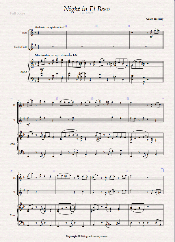 Written in concert D minor, I have tried to capture the essence of El Beso in this Tango from it’s syncopated rhythms to lyrical moments as well as a calming of the mood in the middle. I have set it to intermediate level but the whole score is on the youtube link for you to assess suitability.
