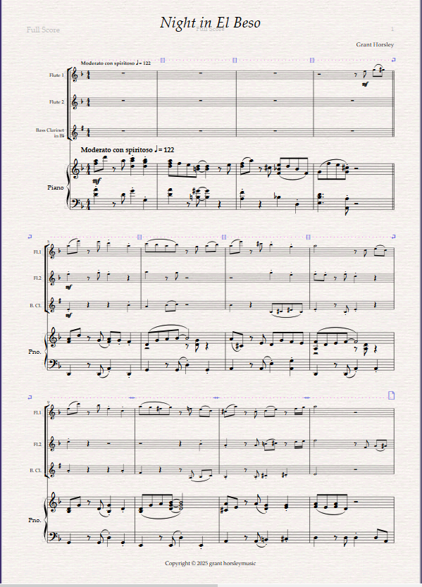 Night in El Beso Mixed Ensemble- (2 Flutes Bass Clarinet and Piano)