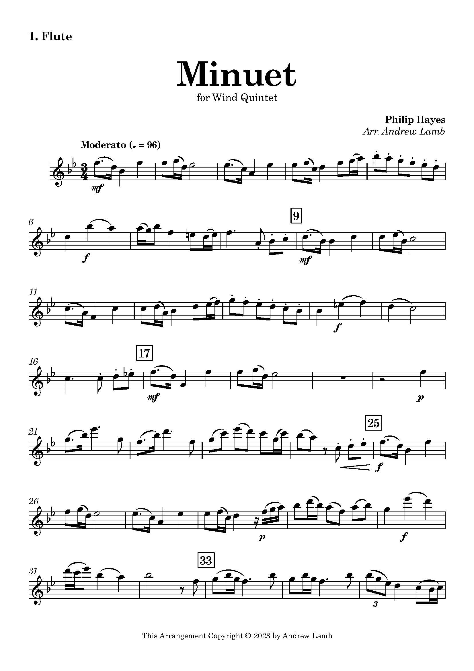 Introducing our wind quintet arrangement of “Minuet” by Philip Hayes! This enchanting sheet music adaptation beautifully captures the essence of the 18th-century courtly dance. Crafted specifically for wind quintet, our arrangement showcases the interplay of flute, oboe, clarinet, bassoon, and horn, creating a captivating and harmonious performance. Perfect for intermediate and advanced players, our meticulously notated sheet music brings the charm of “Minuet” to life. Elevate your repertoire with this delightful arrangement and experience the joy of playing this timeless classic with your wind quintet ensemble.