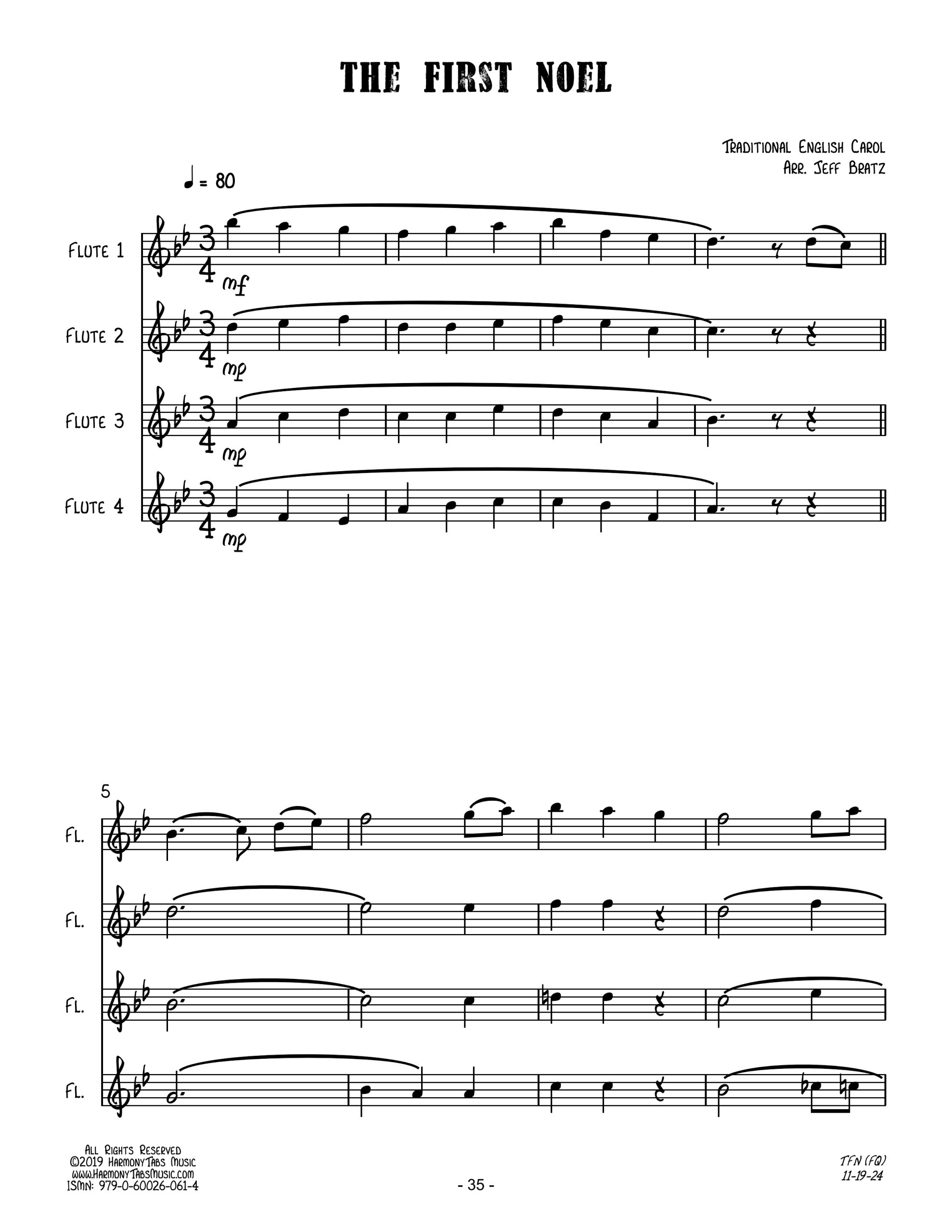 | A flute quartet arrangement of The First Noel. Ideal for holiday caroling! |