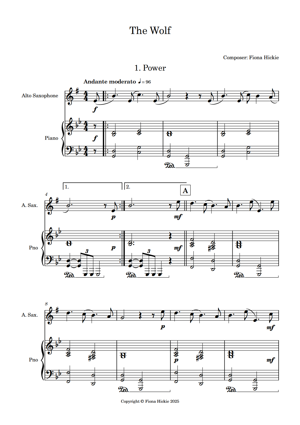 This work is a set of pieces for alto saxophone and piano to portray a wolf.