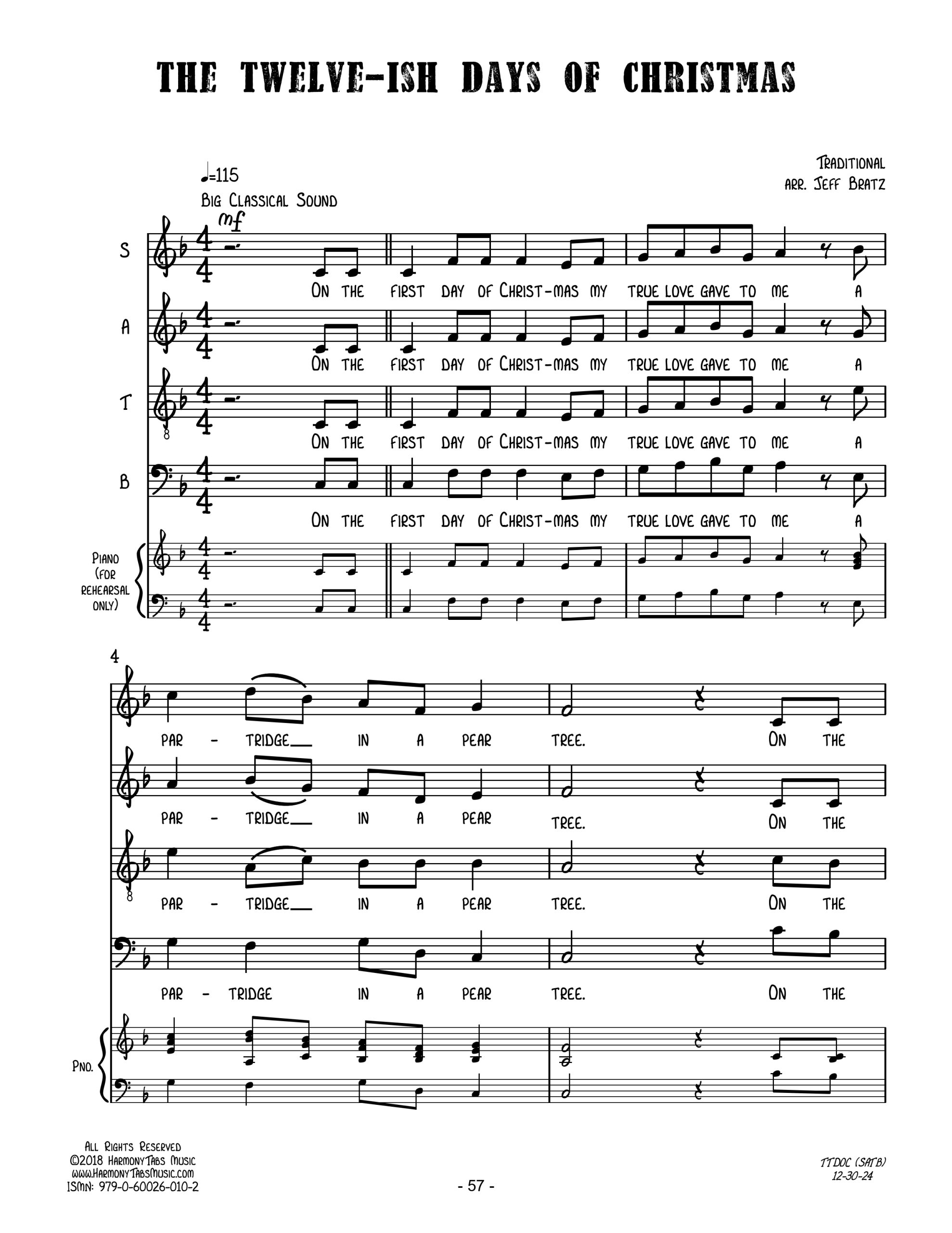 | Traditional English Christmas carol with additions by Frederic Austin. A shortened tongue-in-cheek SATB caroling arrangement of The Twelve Days of Christmas. |