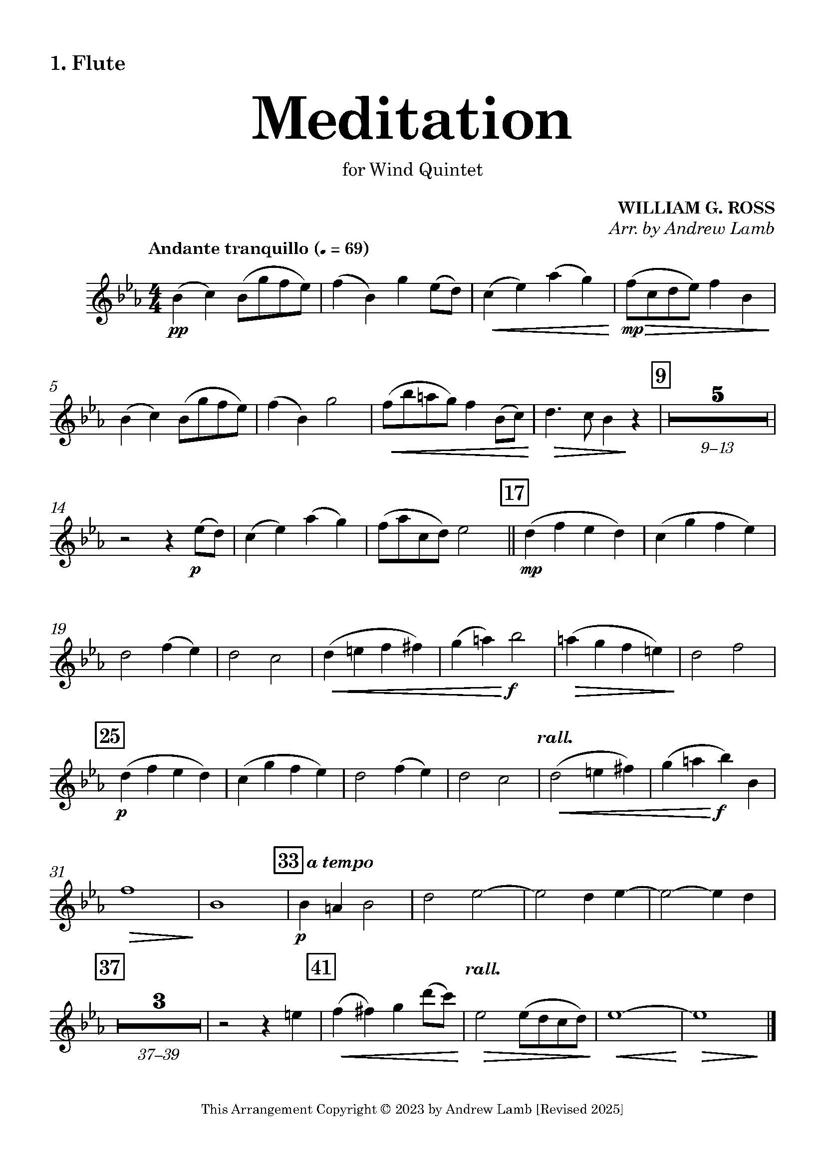 This arrangement offers a captivating rendition of “Meditation” by William G. Ross (1881-1928) specifically tailored for wind quintets. Immerse yourself in the enchanting melodies and harmonies as they intertwine seamlessly among the flute, oboe, clarinet, bassoon, and French horn. Perfect for both intermediate and advanced ensembles, this sheet music arrangement beautifully captures the essence of Ross’ original composition, providing a delightful and engaging musical experience for performers and audiences alike.