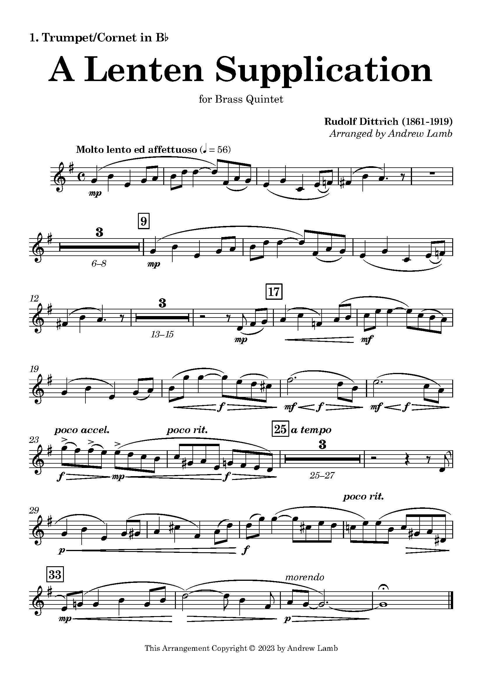 Rudolf Dittrich | A Lenten Supplication | for Brass Quintet