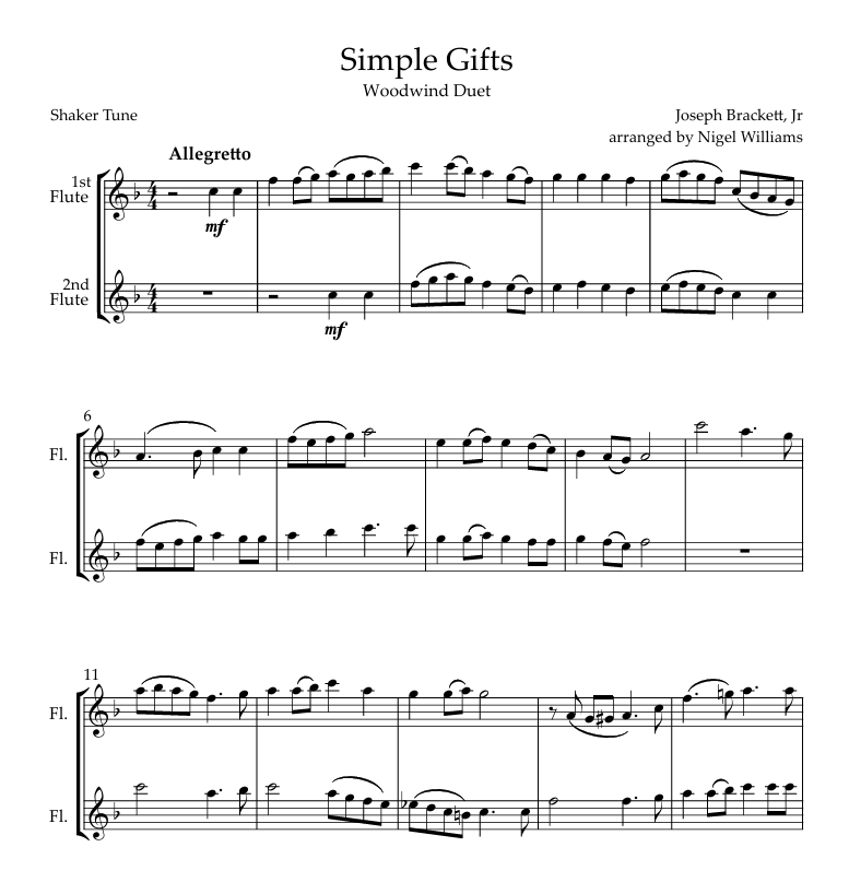 Popular American folk hymn, score and parts. Early Intermediate level.